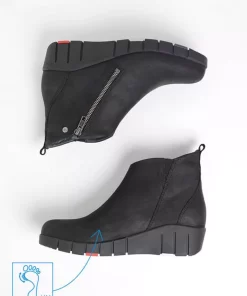 Wolky’s Phoenix is a super soft ankle boot made of greased Nubuck. The boot has a functional zipper on the outside and a thick sole that stabilizes the back of the foot. Thanks to the flexible front part of the shoe, you’ll be able to walk with utmost comfort. The comfortable wedge heel makes you look taller and slimmer, but you won’t feel taller due to the platform on the forefoot. With these ankle boots, you can create a stylish and cool look with any outfit. Try it on quickly and who knows, the Phoenix might even earn a place in your wardrobe!