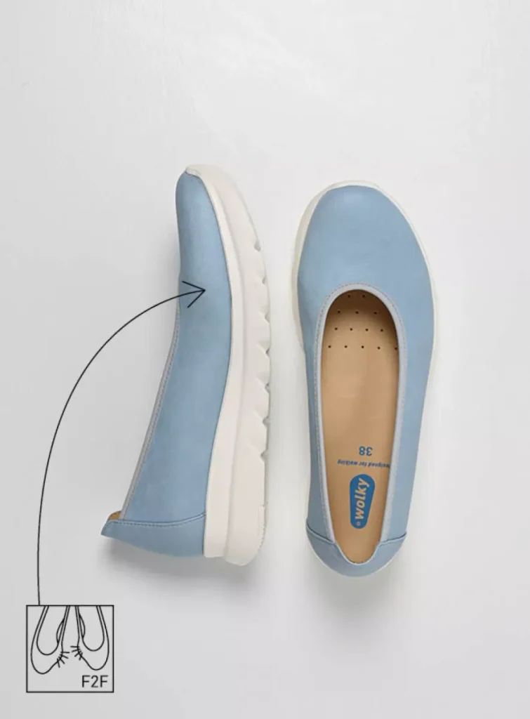 - Suitable for the average foot (width fitting M/W) and feet with bunions (hallux valgus). The Snallerina F2F features Wolky’s patented Fit2Feet system and also has an elasticated collar, allowing the shoe to easily adjust to the shape of your foot. It is also suitable for fuller feet and feet with a high instep.
